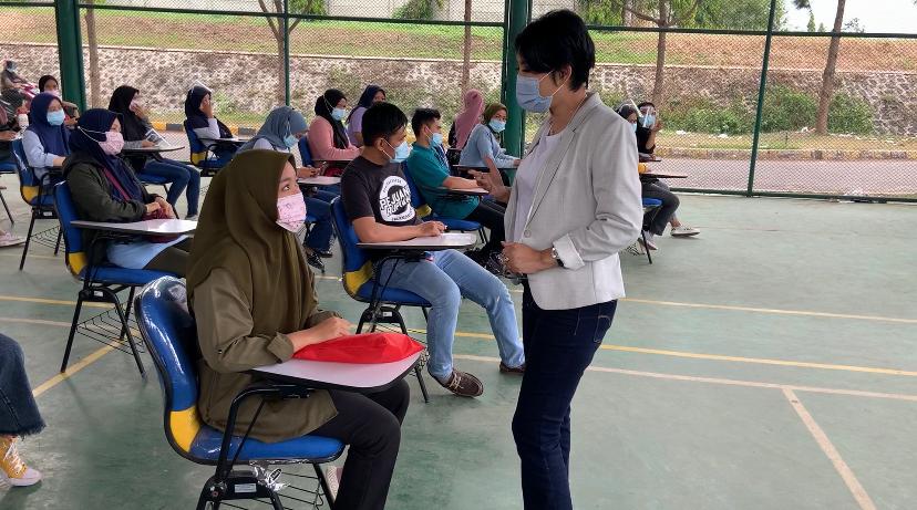 Wawancara Ketua DPP Apindo Jabar bersama Humas PT. PYI, Bpk. Hendrik dalam kegiatan vaksinasi di PT. PYI, Cianjur